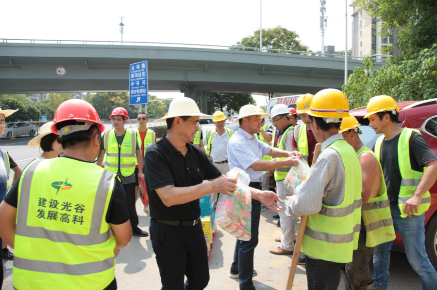 9月13日,一年一度的中秋佳節(jié),武漢高科集團(tuán)黨委書(shū)記、董事長(zhǎng)黃峰,黨委委員、副總經(jīng)理高翔一行一早赴高科創(chuàng)新產(chǎn)業(yè)園、左嶺還建房、南湖水環(huán)境治理等項(xiàng)目現(xiàn)場(chǎng),慰問(wèn)節(jié)日期間仍奮戰(zhàn)在建設(shè)一線的廣大員工。