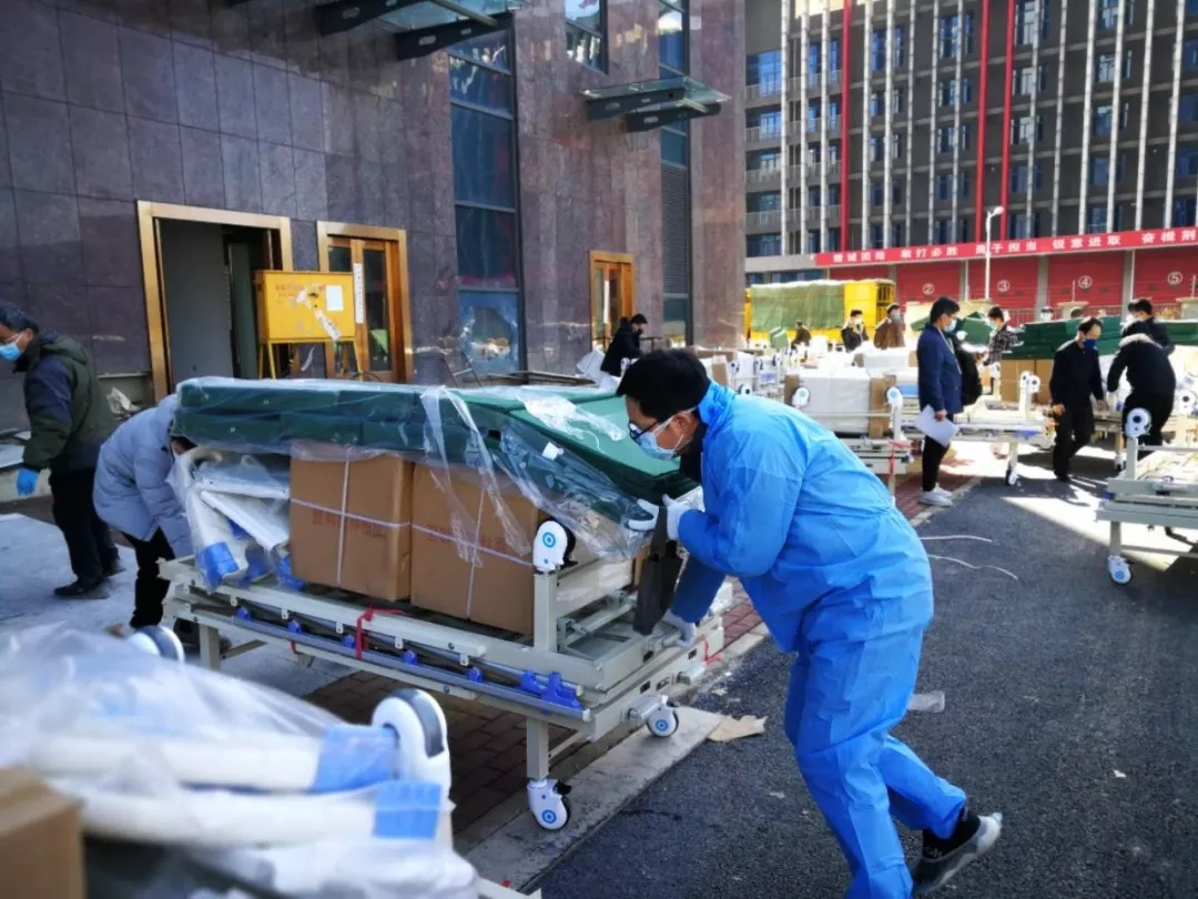 2月18日凌晨2:00,經(jīng)過近13個(gè)小時(shí)的連續(xù)奮戰(zhàn),450套病床的裝卸、運(yùn)輸、安裝,以及218臺(tái)套醫(yī)用電腦的裝卸、搬運(yùn)全部完成。