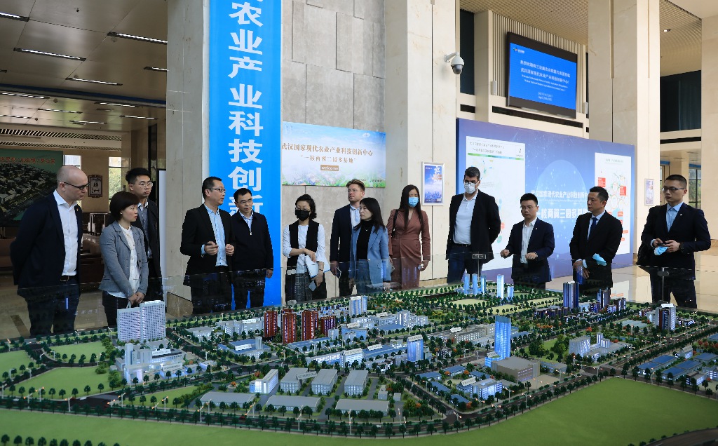 4月20日,荷蘭設(shè)施農(nóng)業(yè)聯(lián)盟率荷蘭騎士農(nóng)業(yè)、荷蘭普瑞瓦等10余家企業(yè)代表參觀考察武漢國家現(xiàn)代農(nóng)業(yè)產(chǎn)業(yè)科技創(chuàng)新中心(以下簡稱“武漢國家農(nóng)創(chuàng)中心”),走訪園區(qū)企業(yè),舉行交流座談。武漢高科集團總經(jīng)理、高農(nóng)集團董事長高尚,高農(nóng)集團副總經(jīng)理孫培良接待考察團一行。