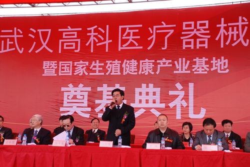 4月15日,武漢國家生物產(chǎn)業(yè)基地高科醫(yī)療器械園開工奠基暨國家生殖健康產(chǎn)業(yè)基地授牌儀式在九龍產(chǎn)業(yè)基地舉行,儀式由武漢高科集團(tuán)公司趙家新董事長主持。?