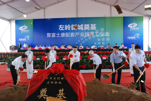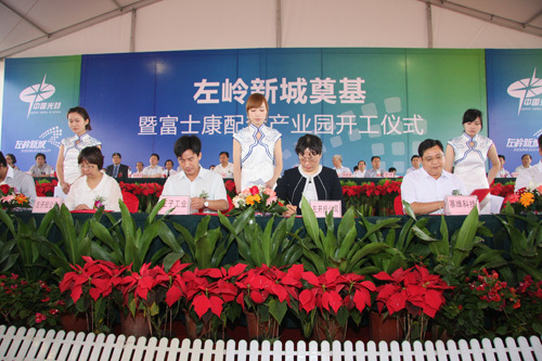 左嶺新城的起步區(qū)(約2.2平方公里)用于建設(shè)富士康配套產(chǎn)業(yè)園。該配套產(chǎn)業(yè)園一期計(jì)劃總投資15億元。目前,已投入5700萬元用于該配套產(chǎn)業(yè)園一期的拆遷、場(chǎng)平等基礎(chǔ)設(shè)施建設(shè),為富士康配套項(xiàng)目的招商和項(xiàng)目入駐提供條件。奠基儀式上,賽維印刷、王子工業(yè)、麗佳環(huán)保、泰銀利、力誠(chéng)生物、安德瑞、川祺盛、鴻益進(jìn)、邁威光電等9家首批企業(yè)簽訂了入園協(xié)議。