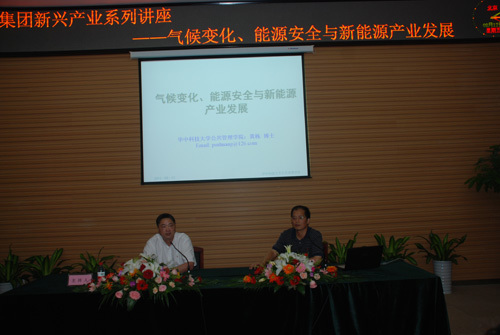 為普及產(chǎn)業(yè)投資的知識,增強員工特別是青年員工對投資產(chǎn)業(yè)的了解,集團公司近期開始舉辦新興產(chǎn)業(yè)系列講座。8月12日,集團公司組織全體員工參加了新興產(chǎn)業(yè)系列講座第一講——“氣候變化、能源安全與新能源產(chǎn)業(yè)發(fā)展”講座,特邀華工能源政策與低碳經(jīng)濟研究中心主任黃棟博士主講,集團公司趙家新董事長在講座開始前作了動員講話。