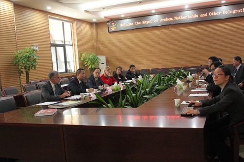 11月26日上午,武漢市友好城市、荷蘭阿納姆市市長寶琳·奎克夫人率隊訪問了武漢高科集團,并與集團公司董事長趙家新、總經理范蘊玉在醫(yī)療器械園進行座談。