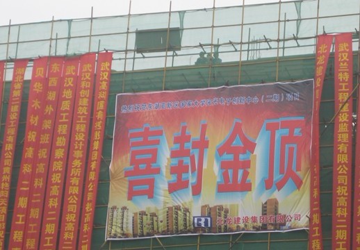 11月28日,國家大學(xué)科技園光電子創(chuàng)新中心二期喜封金頂。武漢高科集團公司董事長趙家新,總經(jīng)理范蘊玉,副書記張志勇、副總經(jīng)理張敏、總會計師范曉玲等參加封頂儀式。