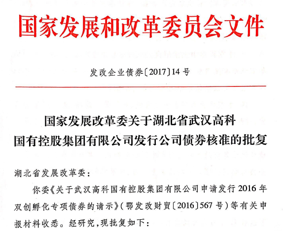 ???????日前, 國(guó)家發(fā)改委下發(fā)《關(guān)于武漢高科國(guó)有控股集團(tuán)有限公司發(fā)行公司債券核準(zhǔn)的批復(fù)》,同意我集團(tuán)公司發(fā)行不超過(guò)15億元,10期公司債券,采取固定利率形式。這也是我集團(tuán)在2007、2010發(fā)行公司債之后,再次獲準(zhǔn)發(fā)行公司債券。