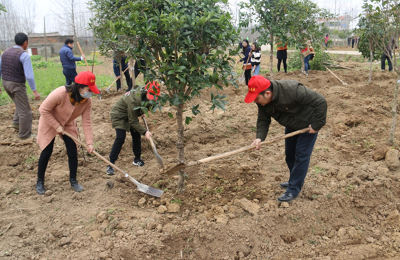 ??????? 又是一年花紅柳綠時。為將扶貧的春風吹到鄉(xiāng)村,3月10日上午,在武漢高科集團紀委書記郭斌的帶領下,集團青年團員志愿者共20人,奔赴精準扶貧對口單位——新洲村三店街石河村,開展“春風行動”植樹活動。
