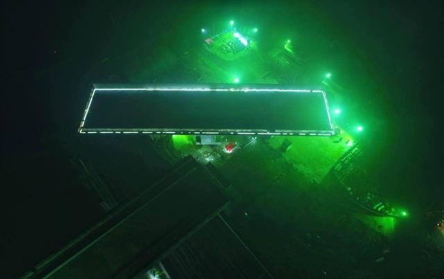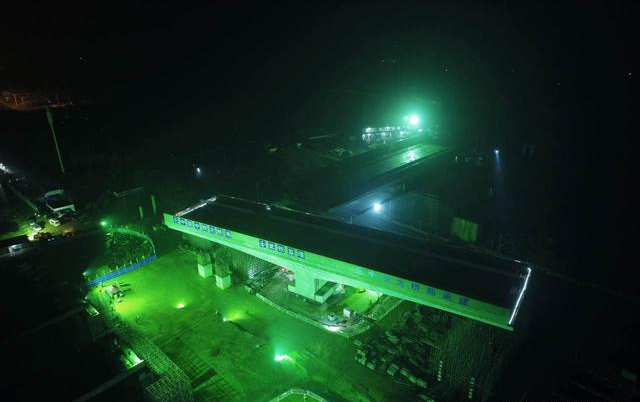 23日凌晨1點53分,右幅萬噸箱梁旋轉90度,跨過武九鐵路,與左幅箱梁合攏