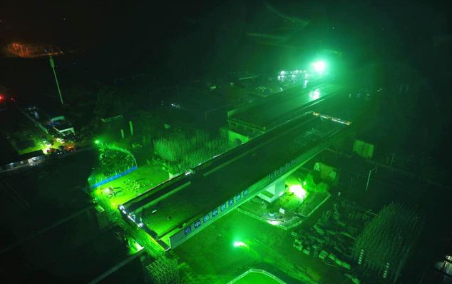 ??????? 5月23日凌晨1時53分,東湖高新區(qū)左嶺大道跨武九鐵路高架橋右幅T型橋體“空中轉體”90度后與左幅橋體合攏,箱梁順利跨越武九鐵路、化工專用線等4股鐵路線。按照計劃,該項目力爭今年9月前完工,屆時,華星光電、武漢天馬等重大產(chǎn)業(yè)項目的交通瓶頸問題將徹底解決。