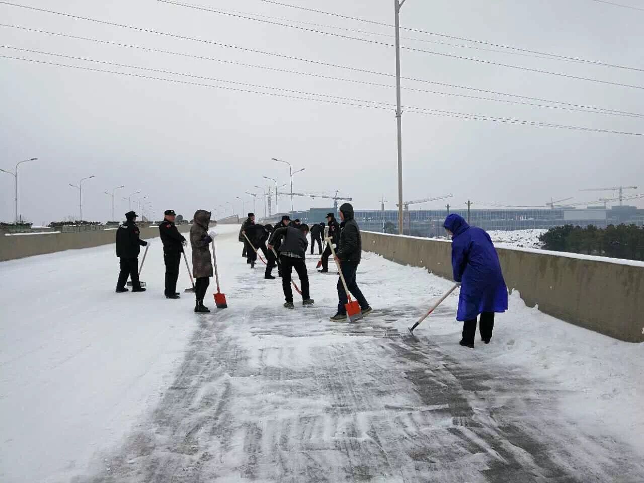 28日,武漢高科集團(tuán)組織民工200人,本部及所屬企業(yè)、入駐企業(yè)、施工單位、社區(qū)群眾等共630多人,投入10輛大型鏟雪車、鐵揪600把,掃把200把,溶雪鹽2800公斤,對珞喻東路光谷廣場轉(zhuǎn)盤及下下延長線、珞喻東路光谷一路以東至光谷四路、高新四路、左嶺大橋等及各所屬企業(yè)區(qū)域內(nèi)路段開展路面積雪清除。
