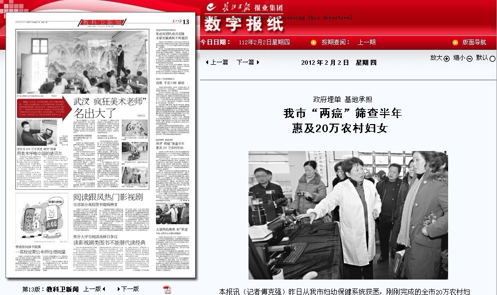 免費(fèi)對(duì)廣大農(nóng)村婦女進(jìn)行乳腺癌和宮頸癌篩查,是分別列入省、市政府為民辦實(shí)事的“惠民項(xiàng)目”。我市于去年6月8日啟動(dòng)“兩癌”篩查項(xiàng)目,各區(qū)婦幼保健院與篩查基地密切合作,全面應(yīng)用全自動(dòng)細(xì)胞DNA定量分析技術(shù),人頭上防漏檢,技術(shù)上防漏診,準(zhǔn)確率大幅提升,在促進(jìn)篩查質(zhì)量的同時(shí),為廣大農(nóng)村婦女的身心健康和生命安全筑起了一道防線。統(tǒng)計(jì)資料顯示,漢南區(qū)婦幼保健院多年堅(jiān)持“兩癌”篩查,連續(xù)4年實(shí)現(xiàn)宮頸癌零死亡;東西湖、黃陂、新洲等區(qū)去年查出的“兩癌”早期患者,因發(fā)現(xiàn)早、治療及時(shí),均已康復(fù)。