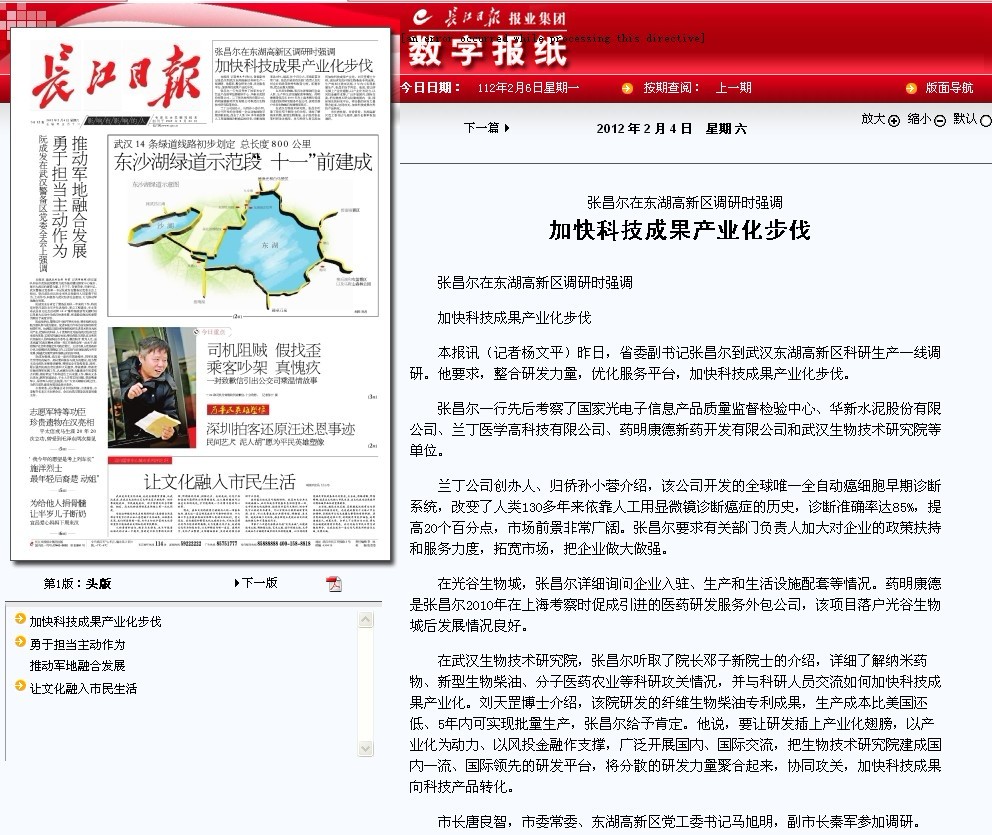 蘭丁公司創(chuàng)辦人、歸僑孫小蓉介紹,該公司開(kāi)發(fā)的全球唯一全自動(dòng)癌細(xì)胞早期診斷系統(tǒng),改變了人類130多年來(lái)依靠人工用顯微鏡診斷癌癥的歷史,診斷準(zhǔn)確率達(dá)85%,提高20個(gè)百分點(diǎn),市場(chǎng)前景非常廣闊。張昌爾要求有關(guān)部門負(fù)責(zé)人加大對(duì)企業(yè)的政策扶持和服務(wù)力度,拓寬市場(chǎng),把企業(yè)做大做強(qiáng)。