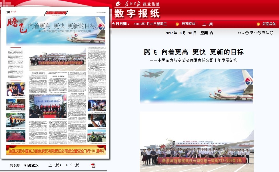 風(fēng)卷云舒,波瀾壯闊。十年前的2002年8月18日,在新世紀(jì)中國民航大重組、大聯(lián)合的歷史機(jī)遇中,由中國東方航空公司、武漢市人民政府、民營和高科技企業(yè)共同組建的全新航空企業(yè)——中國東方航空武漢有限責(zé)任公司正式掛牌成立。