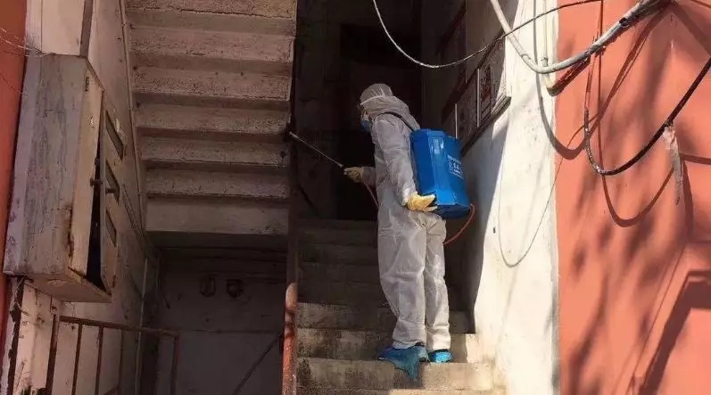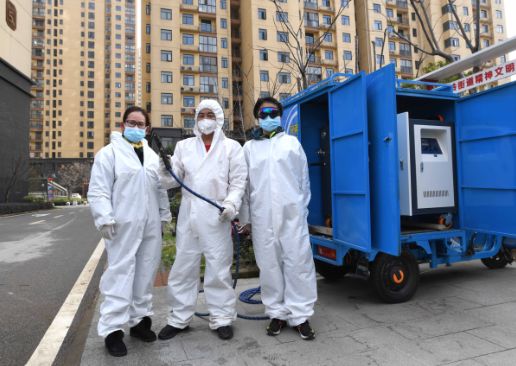 譚茂科在社區(qū)從事消殺工作 武漢碧水集團供圖