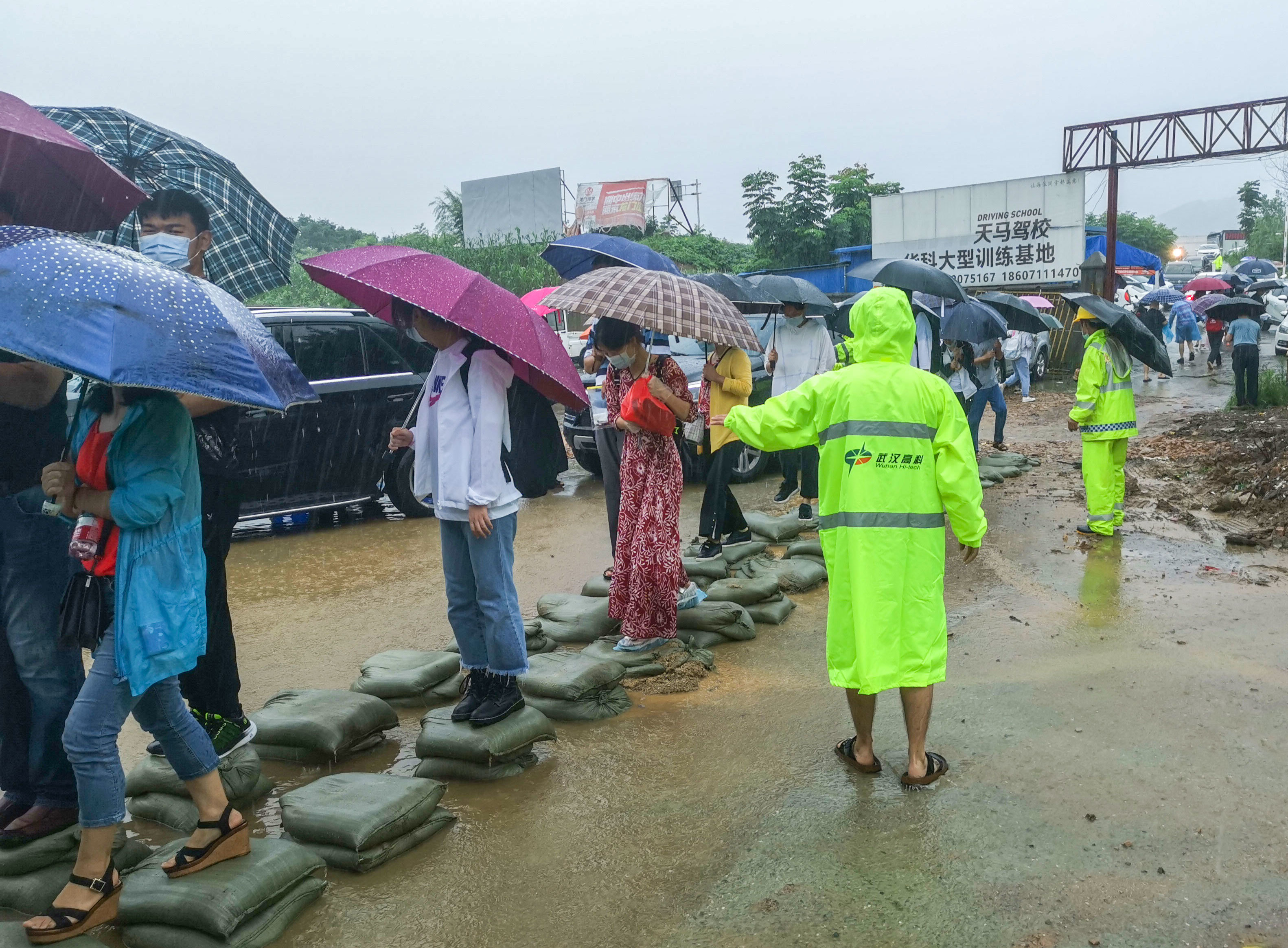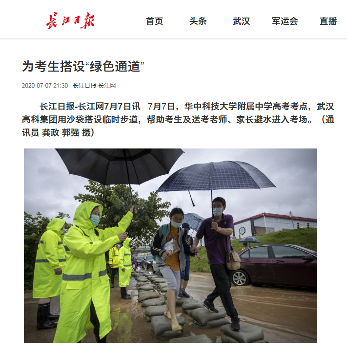 7月7日訊(通訊員郭強(qiáng) 龔政)今日,華中科技大學(xué)附屬中學(xué)高考考點(diǎn),武漢高科集團(tuán)用沙袋搭設(shè)臨時步道,幫助考生及送考老師、家長避水進(jìn)入考場。