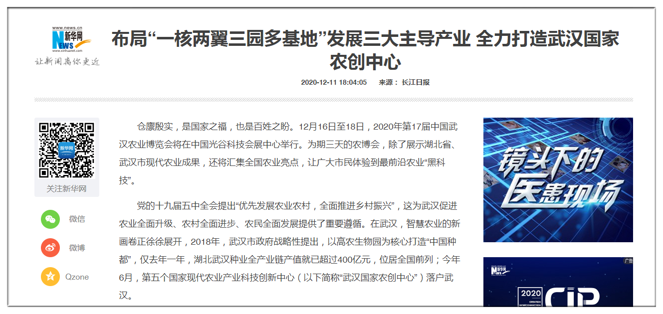 黨的十九屆五中全會提出“優(yōu)先發(fā)展農(nóng)業(yè)農(nóng)村,全面推進(jìn)鄉(xiāng)村振興”,這為武漢促進(jìn)農(nóng)業(yè)全面升級、農(nóng)村全面進(jìn)步、農(nóng)民全面發(fā)展提供了重要遵循。在武漢,智慧農(nóng)業(yè)的新畫卷正徐徐展開,2018年,武漢市政府戰(zhàn)略性提出,以高農(nóng)生物園為核心打造“中國種都”,僅去年一年,湖北武漢種業(yè)全產(chǎn)業(yè)鏈產(chǎn)值就已超過400億元,位居全國前列;今年6月,第五個國家現(xiàn)代農(nóng)業(yè)產(chǎn)業(yè)科技創(chuàng)新中心(以下簡稱“武漢國家農(nóng)創(chuàng)中心”)落戶武漢。