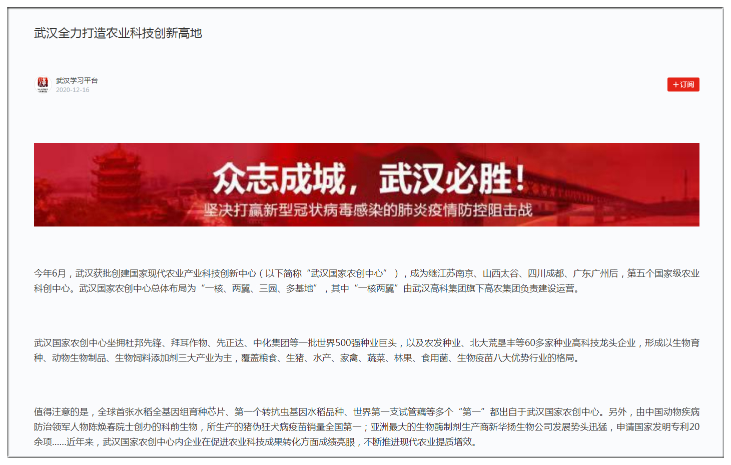 學(xué)習(xí)強國:武漢全力打造農(nóng)業(yè)科技創(chuàng)新高地