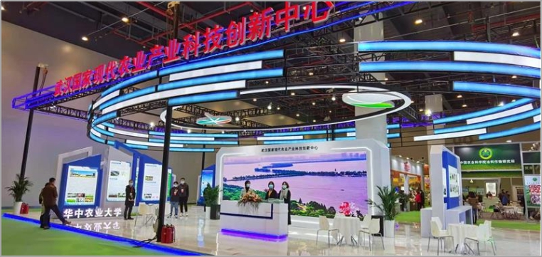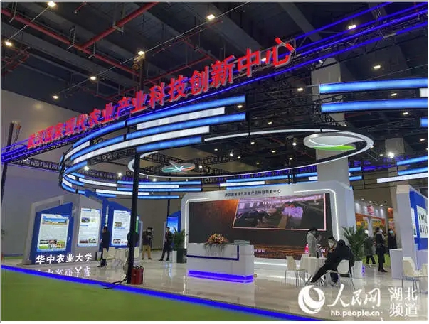 武漢國(guó)家現(xiàn)代農(nóng)業(yè)產(chǎn)業(yè)科技創(chuàng)新中心展區(qū)。(人民網(wǎng) 張沛 攝)