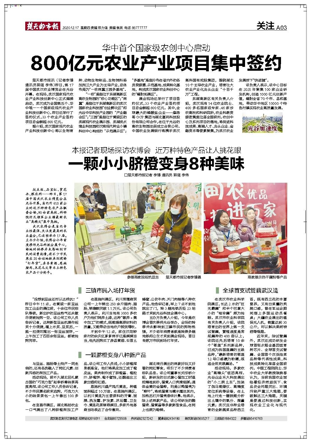楚天都市報(bào):華中首個(gè)國(guó)家級(jí)農(nóng)創(chuàng)中心啟動(dòng)