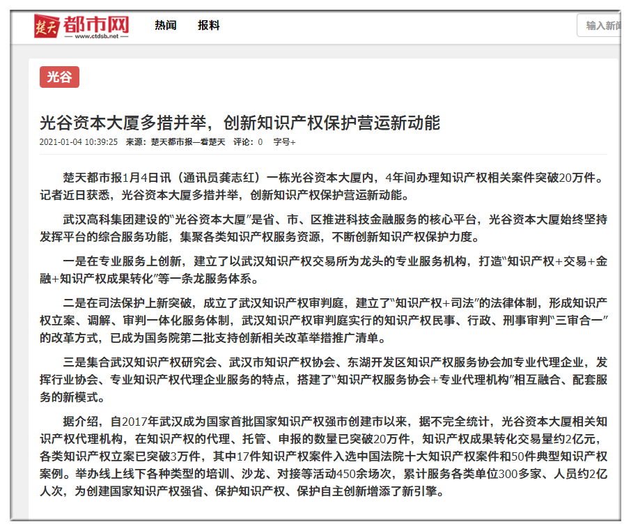 楚天都市網(wǎng):光谷資本大廈多措并舉,創(chuàng)新知識產(chǎn)權(quán)保護營運新動能