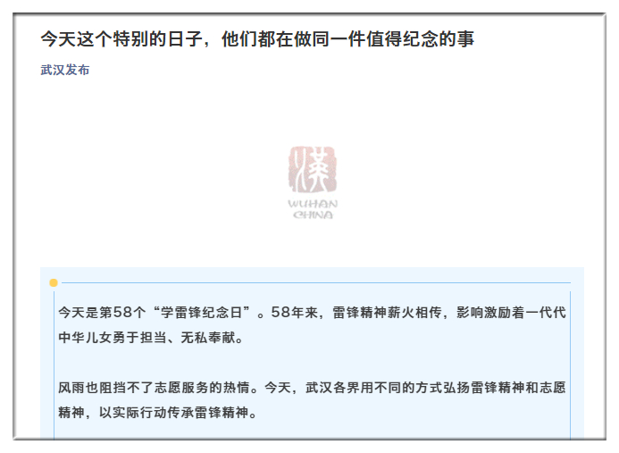 風雨也阻擋不了志愿服務的熱情。今天,武漢各界用不同的方式弘揚雷鋒精神和志愿精神,以實際行動傳承雷鋒精神。