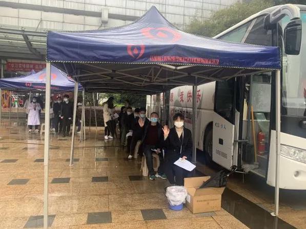 ?早上9時許,盡管還下著小雨,獻血車外的雨棚中已經(jīng)坐滿了等待獻血的員工,在工作人員的引導下,有序完成填表、體檢等準備工作。