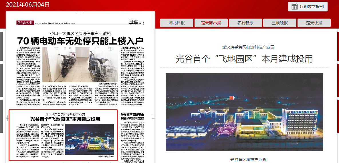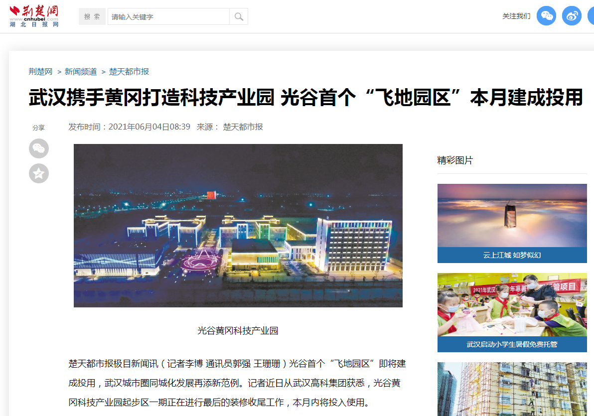 楚天都市報:武漢攜手黃岡打造科技產(chǎn)業(yè)園 光谷首個“飛地園區(qū)”本月建成投用