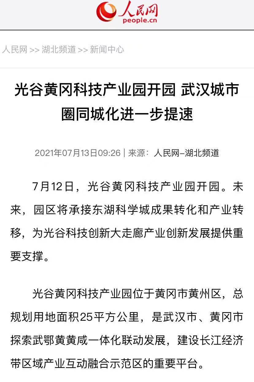 人民網(wǎng):光谷黃岡科技產(chǎn)業(yè)園開園?武漢城市圈同城化進(jìn)一步提速