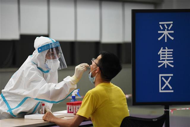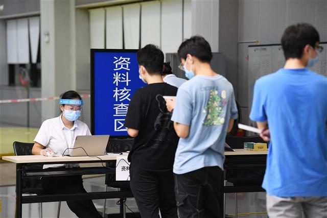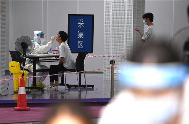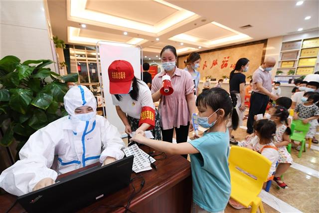 8月4日晚,武漢高科醫(yī)療器械園組織園區(qū)企業(yè)職工在空調(diào)大廳分批次進行核酸檢測。