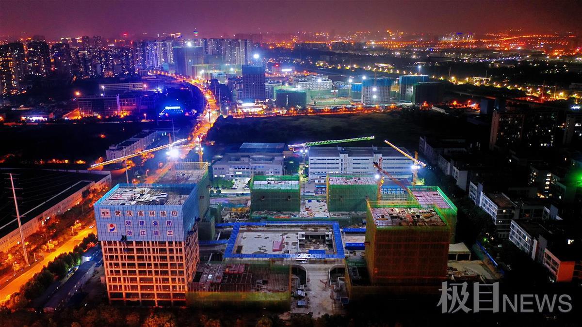 夜色下的光谷數(shù)字家庭產(chǎn)業(yè)基地孵化器施工現(xiàn)場(chǎng)