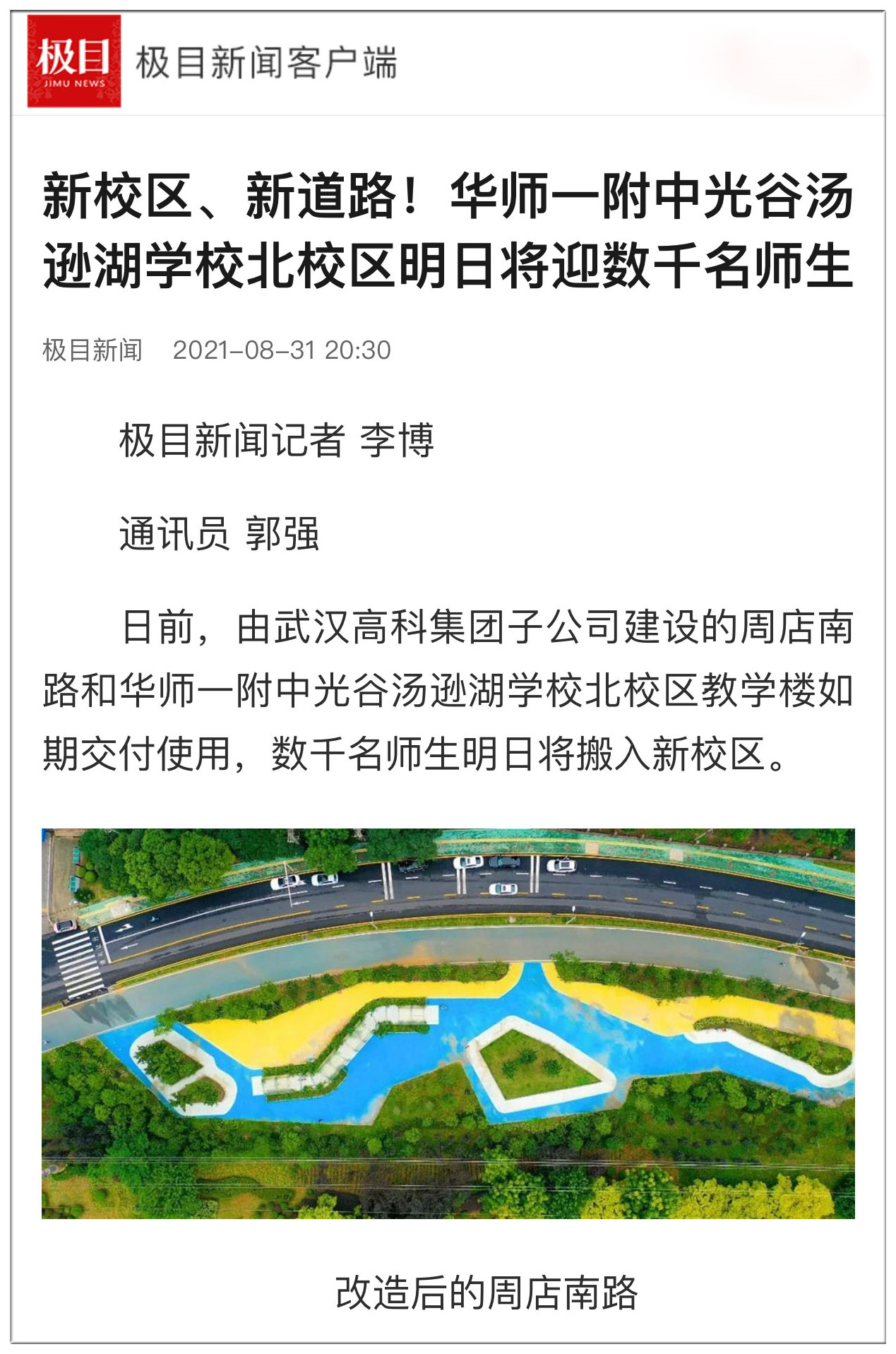 日前,由武漢高科集團子公司建設(shè)的周店南路和華師一附中光谷湯遜湖學(xué)校北校區(qū)教學(xué)樓如期交付使用,數(shù)千名師生明日將搬入新校區(qū)。