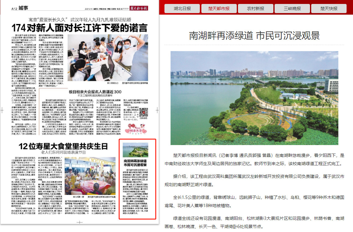 湖北日?qǐng)?bào):南湖再添一條綠道