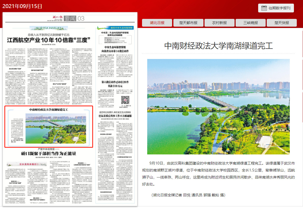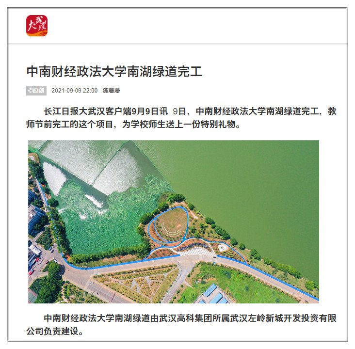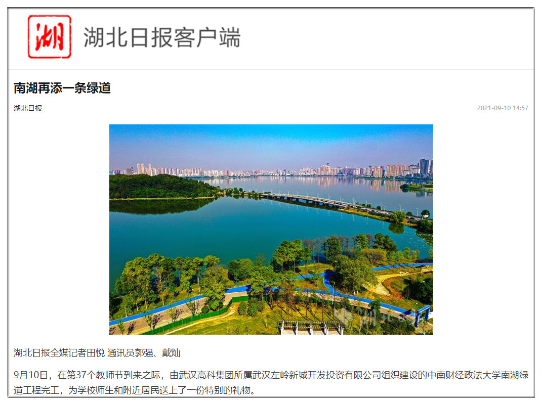 湖北日?qǐng)?bào):中南財(cái)經(jīng)政法大學(xué)南湖綠道完工