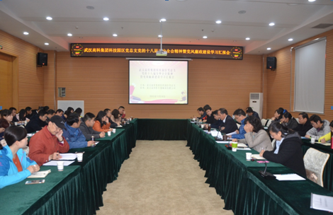 ? ? ? ? 11月18日上午,武漢高科集團(tuán)科技園區(qū)黨總支主辦的黨的十八屆五中全會(huì)精神暨黨風(fēng)廉政建設(shè)學(xué)習(xí)匯報(bào)會(huì)在醫(yī)療器械園舉行。