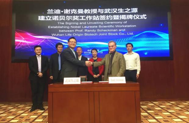 3月31日,武漢高科醫(yī)療器械園入駐企業(yè)——武漢生之源生物科技股份有限公司,與諾貝爾獎獲得者蘭迪·謝克曼(Randy Schekman)教授就在園區(qū)建立諾貝爾獎工作站舉行了簽約儀式并揭牌。