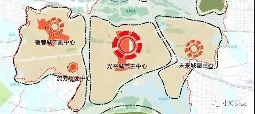 早在2019年2月,東湖高新區(qū)就提出要高起點建立“東部副中心”,加快推進“一主兩副四組團”的城區(qū)空間布局?!耙恢鳌笔枪夤戎行某?,“兩副”則是魯巷副中心和未來城副中心。很顯然魯巷發(fā)展已經(jīng)飽和,光谷中心城門檻大幅提升,下一個將重點打造未來城副中心。