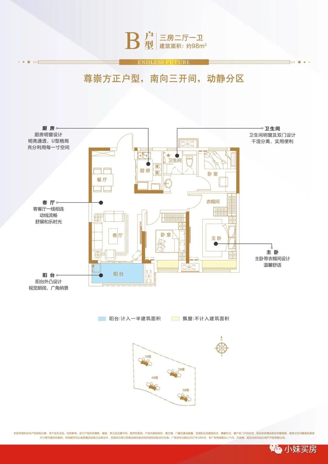 建面約98平:三開間朝南,動靜分區(qū),明廚明衛(wèi)!百平內(nèi)三房,滿足更多居住可能,在控總價的基礎(chǔ)上功能性也足夠!客餐通廳,動線更流暢,視覺上也更闊綽。